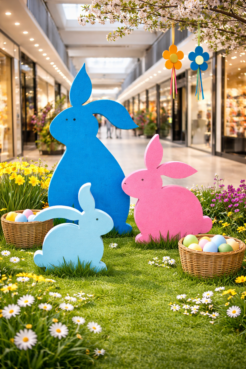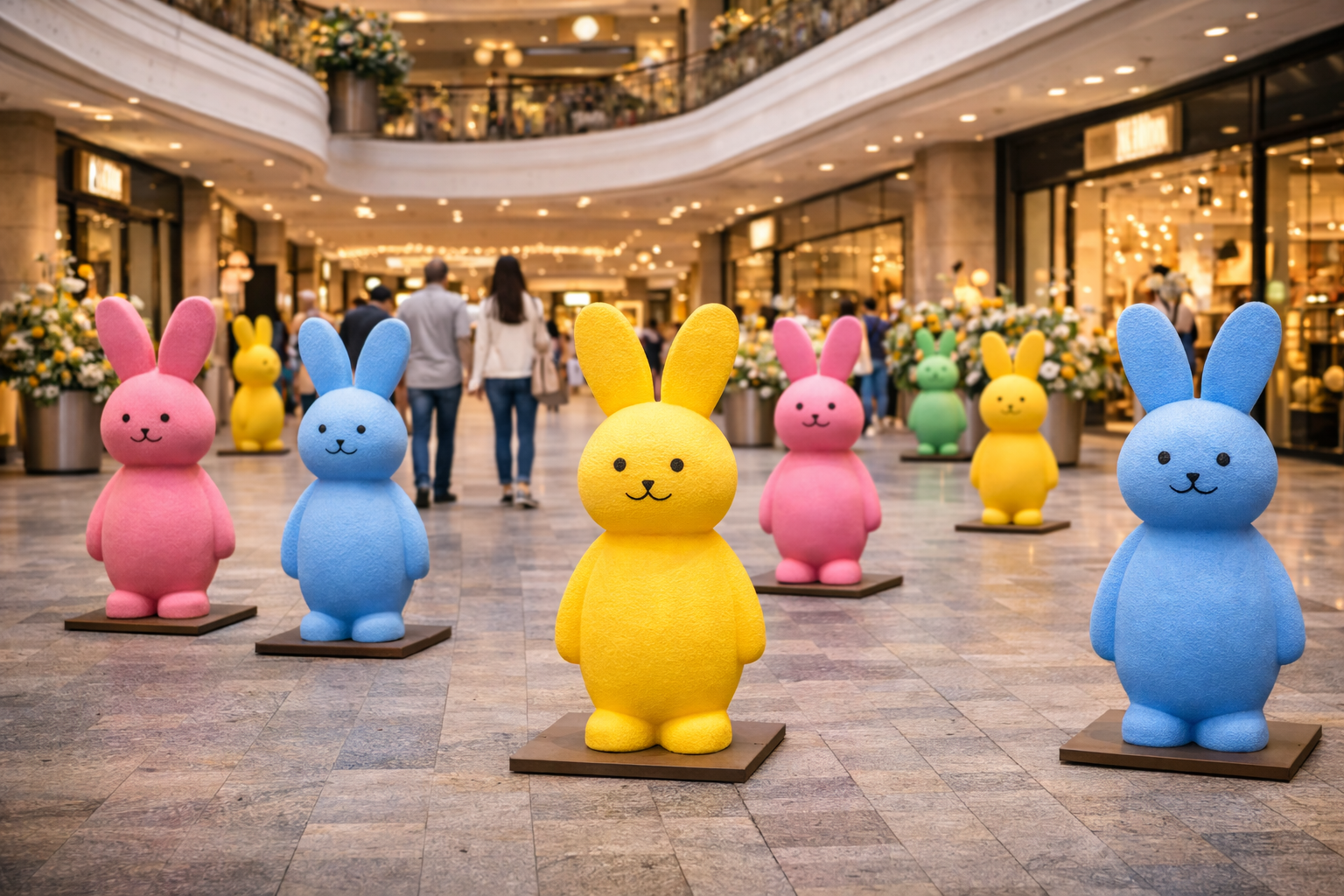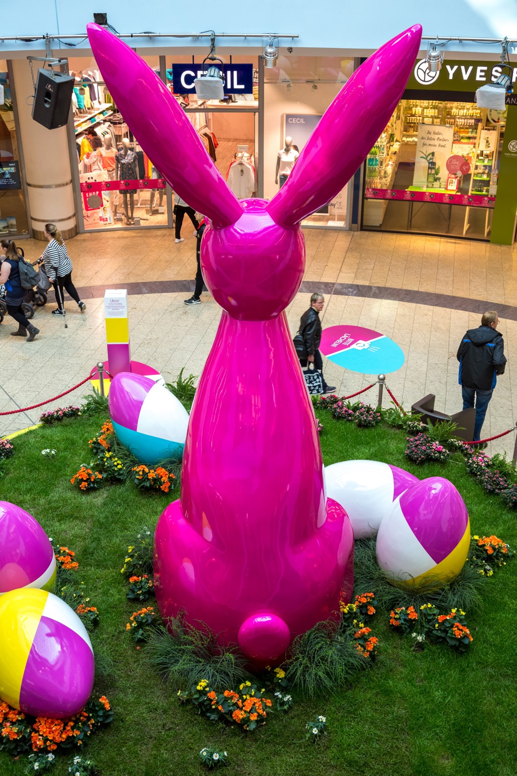 Ostern ist der perfekte Anlass für Frequenz, Fotos und Verweildauer. Wir gestalten Centerflächen mit hochwertigen Oster-Highlights – von ikonischen XXL-Eiern über Hasen und Themenwelten bis zu kompletten Aktionsflächen.