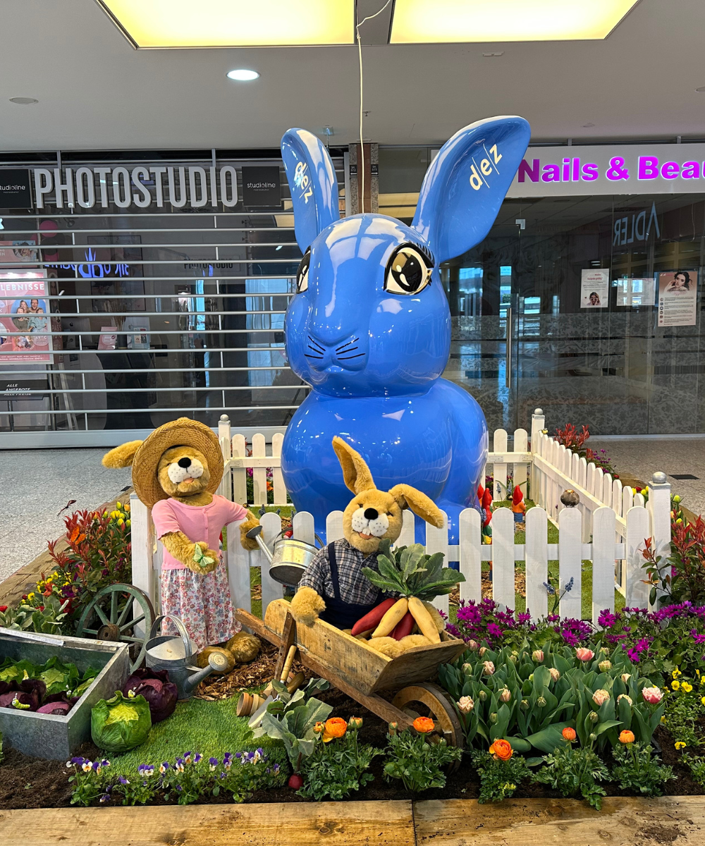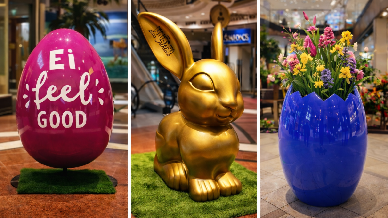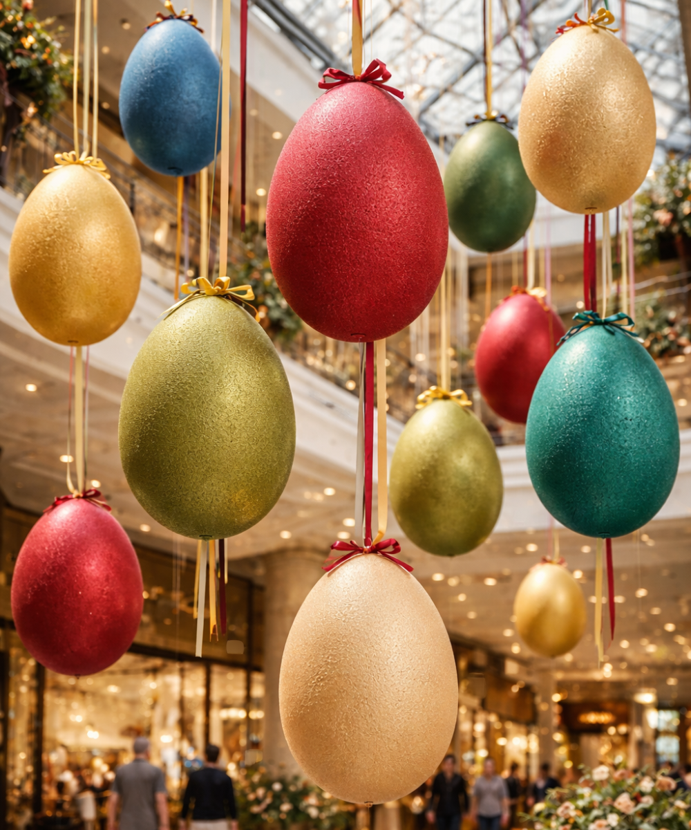 Ostern ist der perfekte Anlass für Frequenz, Fotos und Verweildauer. Wir gestalten Centerflächen mit hochwertigen Oster-Highlights – von ikonischen XXL-Eiern über Hasen und Themenwelten bis zu kompletten Aktionsflächen.
